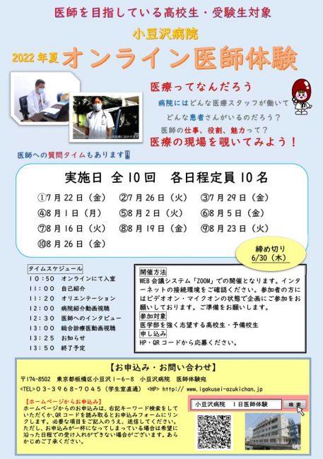 お申し込み方法:小豆沢病院HP・チラシQRからご応募下さい。