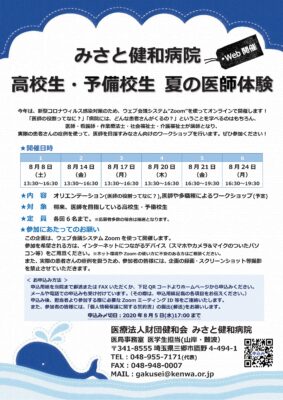 みさと健和病院 高校生・予備校生 夏の医師体験オンライン