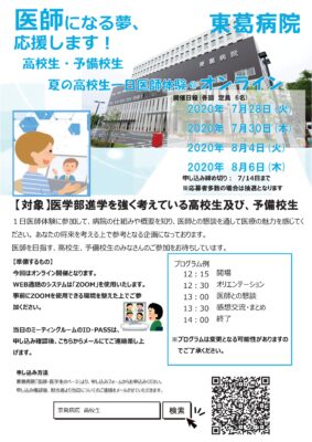 【対象】医学部進学を強く考えている高校生及び、予備校生