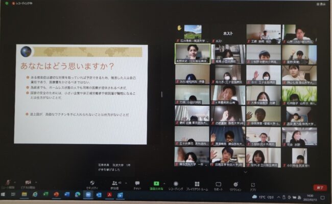 医師のコンピテンシーをテーマにそれぞれが考える医師として必要な資質を共有し、ディスカッションした。