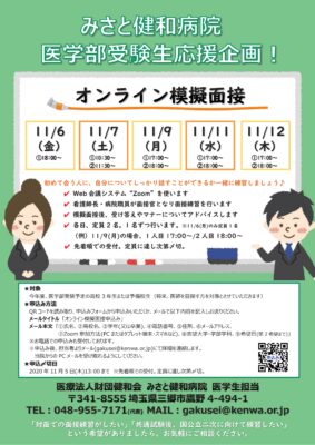 各日2名。1名ずつ面接練習を行います。※11/6(金)のみ定員1名。
